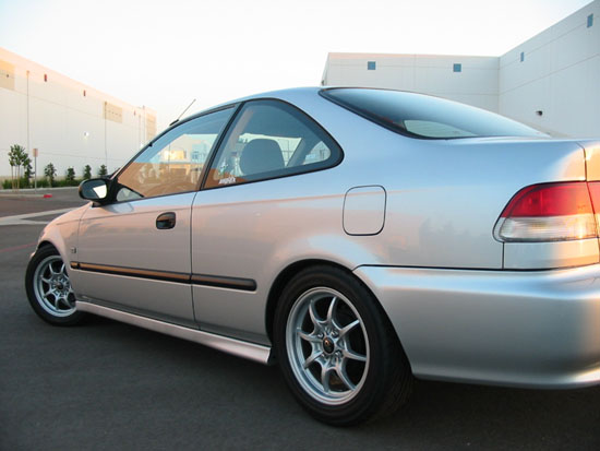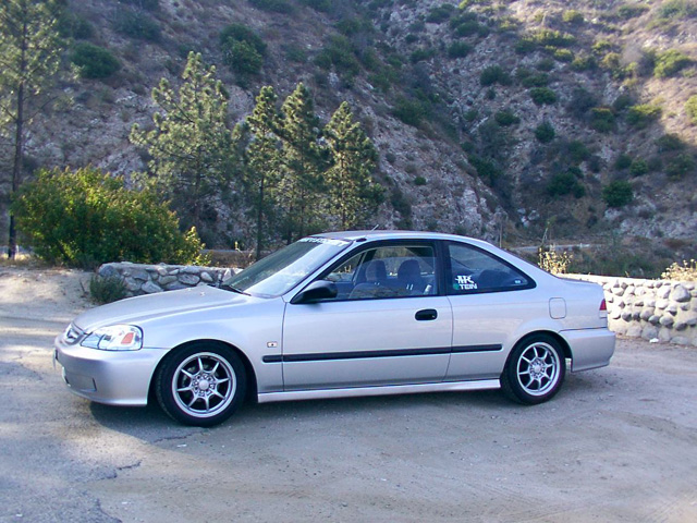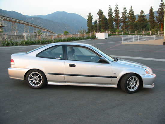 | This my baby and pride and joy, my 2000 Civic DX coupe | The side as seen from the rear passenger corner |